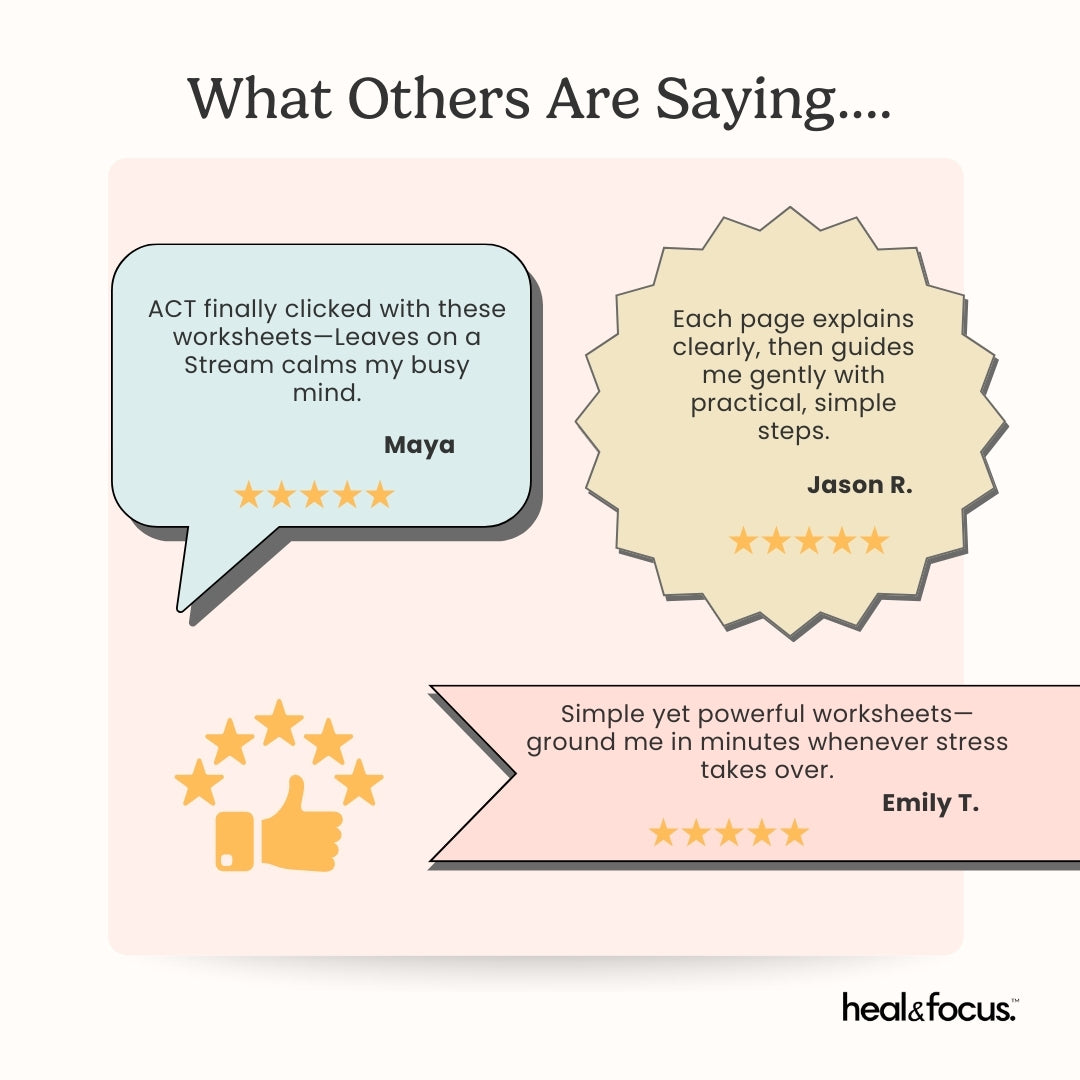 - 🌱 Reduce Overthinking & Rumination with proven defusion skills.
