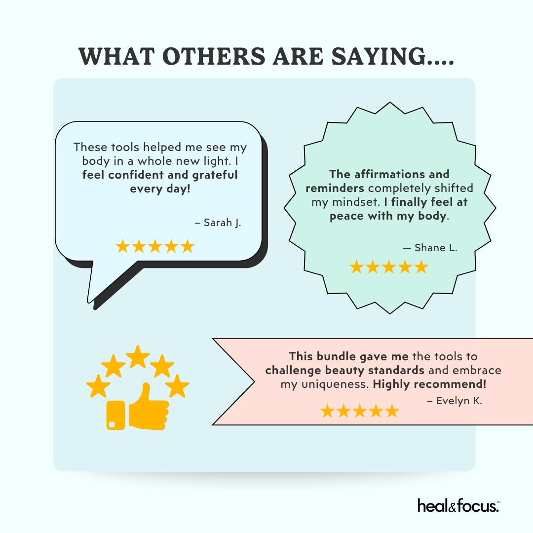 Join over 5,000 happy customers who have used the Body Positivity Bundle to embrace self-love and build a positive mindset. Begin your transformation today.