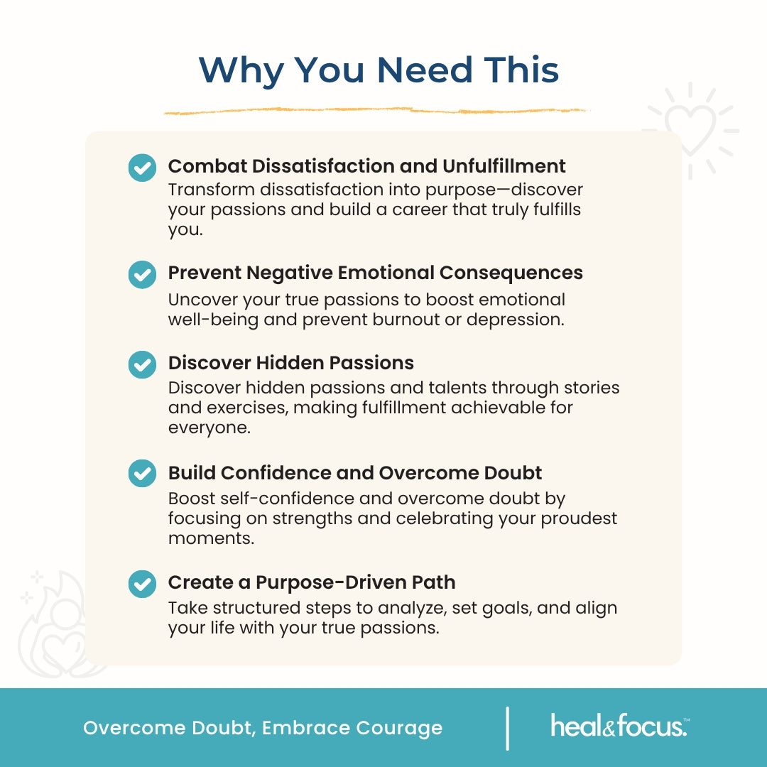 Feeling stuck or uncertain about your next step? The Find Your Passion Workbook helps you turn doubt into direction. With reflective prompts, strength-spotting exercises, and a clear action framework, you’ll uncover what lights you up, align choices with your values, and build a career or life path that feels meaningful and energizing. ✨