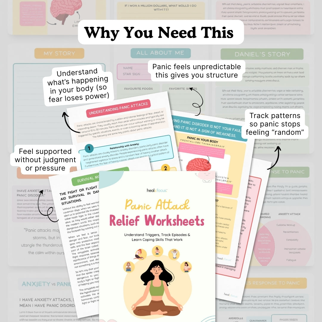 Gentle, therapist-inspired worksheets to calm panic, ease anxiety, and bring peace back to your body and mind — anytime, anywhere.