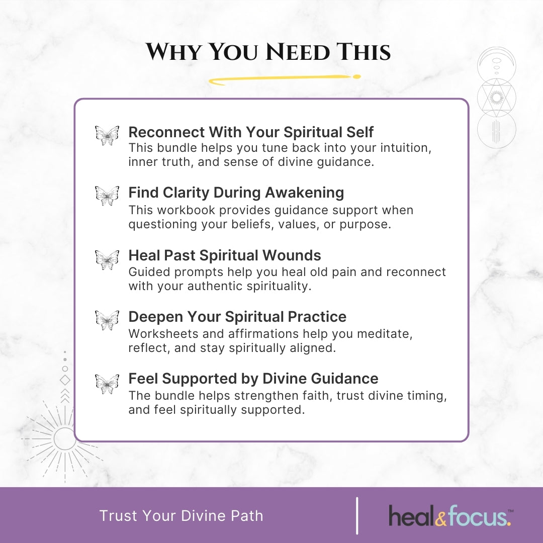 - ✔️ Spiritual Journey Worksheets – Explore beliefs, experiences & inner truth