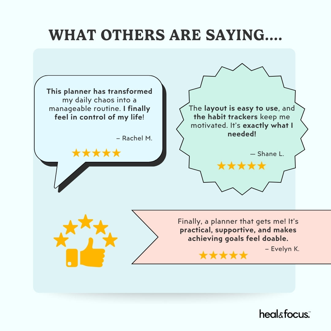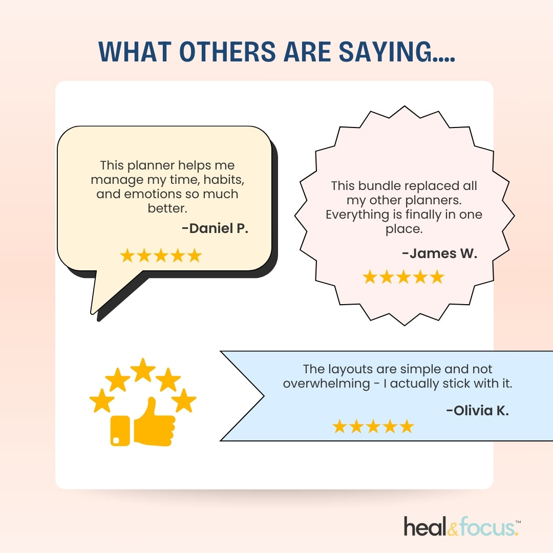 Join over 5,000 happy customers who have used the Ultimate ADHD Planner Bundle to master their days and achieve their goals. Take the first step toward productivity and peace of mind today.